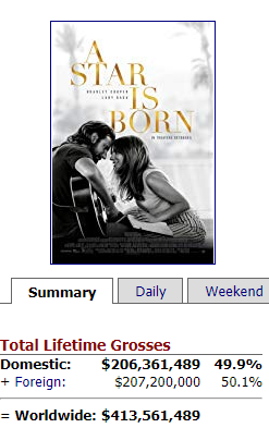 Com suas indicações ao Oscar e adição em novas salas de cinema, é previsto que a arrecadação de "Nasce Uma Estrela" continue aumentando nas próximas semanas.