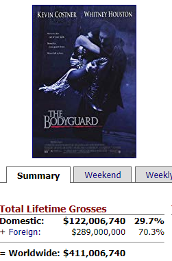 Com uma arrecadação superior a 413 milhões de dólares, o filme ultrapassou "O Guarda Costas", estrelado pela cantora Whitney Houston, que conquistou um total de 411 milhões de dólares arrecadados mundialmente, segundo dados do Box Office Mojo.
