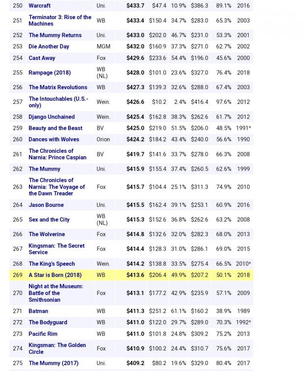 Com a atualização de bilheteria do último final de semana, "Nasce Uma Estrela" se tornou o filme protagonizado por uma cantora mais bem sucedido da história.