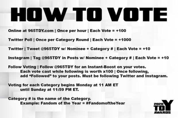 Para votar é super simples, basta fazer uma publicação marcando o perfil da Today's Hits junto com as hashtags da premiação e da categoria, que são: @965TDY #TDYAwards #TopCollab