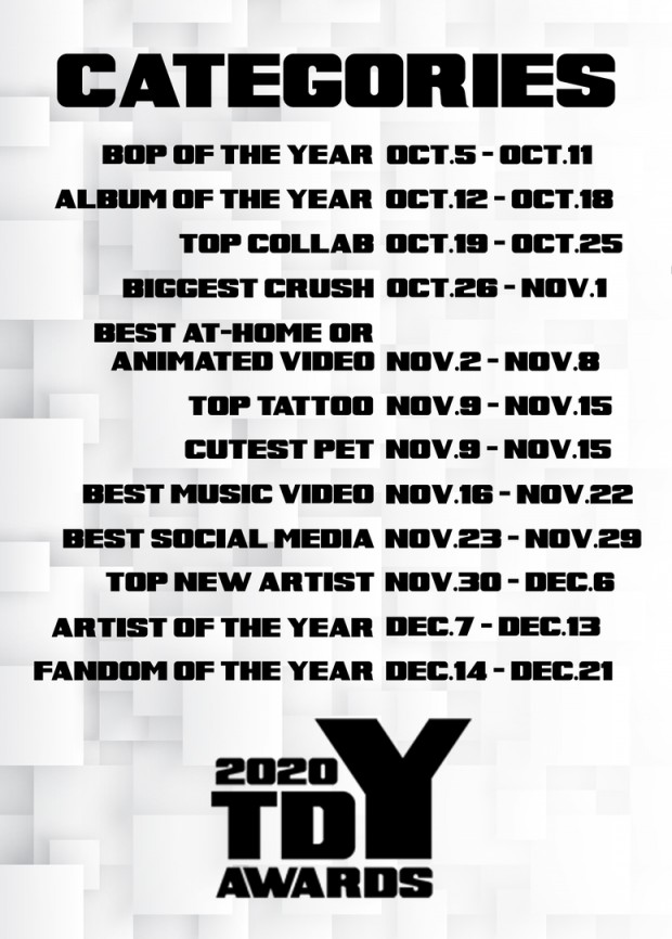 Recentemente, a Today's Hits começou a divulgar as categorias de sua premiação, o TDY Awards 2020, juntamente com seus indicados, abrindo sua votação de forma conjunta. Cada categoria terá sua semana de divulgação e votação, até o momento 3 categorias foram divulgadas.