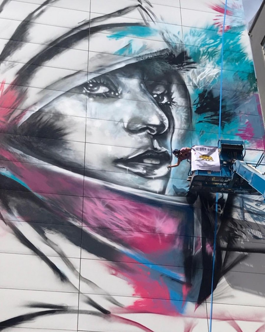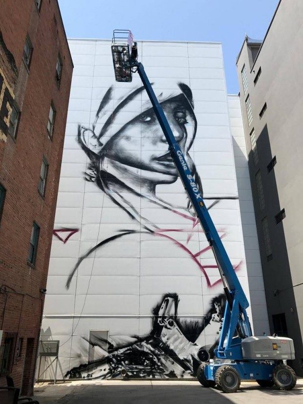 A parte da arena que será pintada é afastada da calçada e rodeada por dois prédios. Um deles foi o local do Art Hotel do ano passado. A artista, Christina Angelina, disse que irá incorporar todas as três paredes em uma pintura da Gaga, usando as superfícies paralelas em um padrão que atrai o olho em direção à cantora no centro.