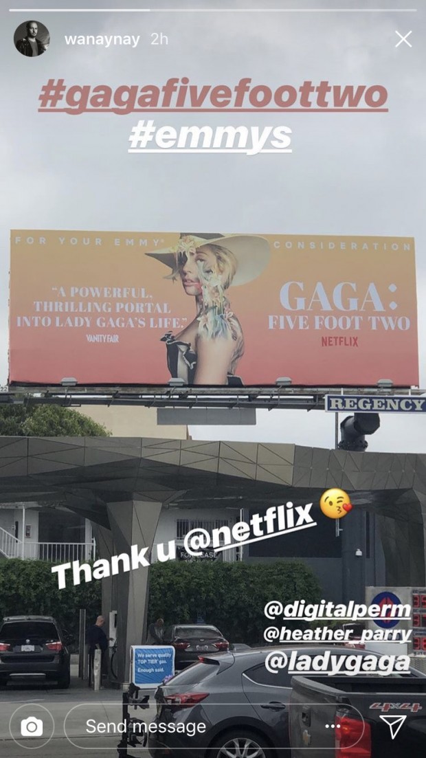 A Netflix, responsável pelo documentário "Gaga: Five Foot Two", começou a espalhar outdoors pelos EUA que informam sobre o projeto ter sido enviado para consideração no Emmy.