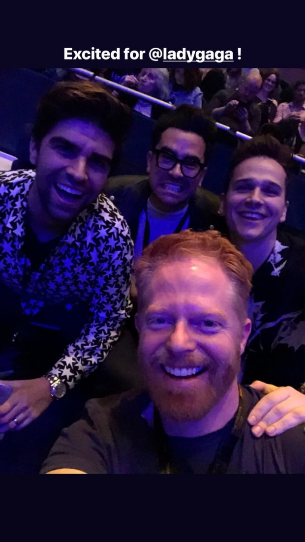 Ao lado de seu marido, Justin Mikita, e o amigo ator Daniel Levy, o ator de "Modern Family" Jesse Tyler Ferguson foi assistir ao show da "Enigma".