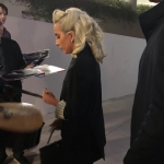 Na ocasião, Gaga foi vista chegando ao local, quando assinou alguns itens para fãs que a esperavam, e também foi fotografada durante o Q&A.