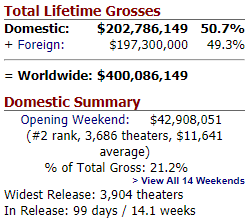 Vale ressaltar que mais da metade do valor arrecadado foi somente nos Estados Unidos. Sendo a outra parte, arrecadada ao redor do mundo.