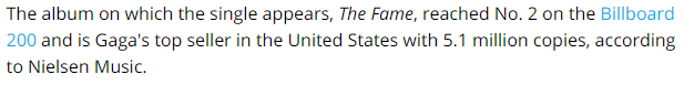 Em artigo celebrando o aniversário do feito, a Billboard norte-americana atualizou o número de vendas do álbum em que a música está presente, "The Fame".