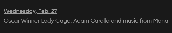Nesta quarta-feira (27) foi anunciado que Lady Gaga estaria no programa Jimmy Kimmel Live! para ser entrevistada, mas a informação ainda não havia sido confirmada oficialmente pelo programa.