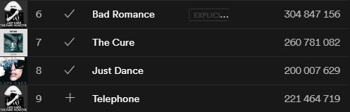 Ainda na memória e no coração dos fãs, aquela que fez todos se animarem e 'apenas dançarem' em diversas festas, "Just Dance", continua progredindo na plataforma de streams Spotify alcançando mais um feito, tornando-se a 9ª música da cantora a ultrapassar 200 milhões de reproduções na plataforma.