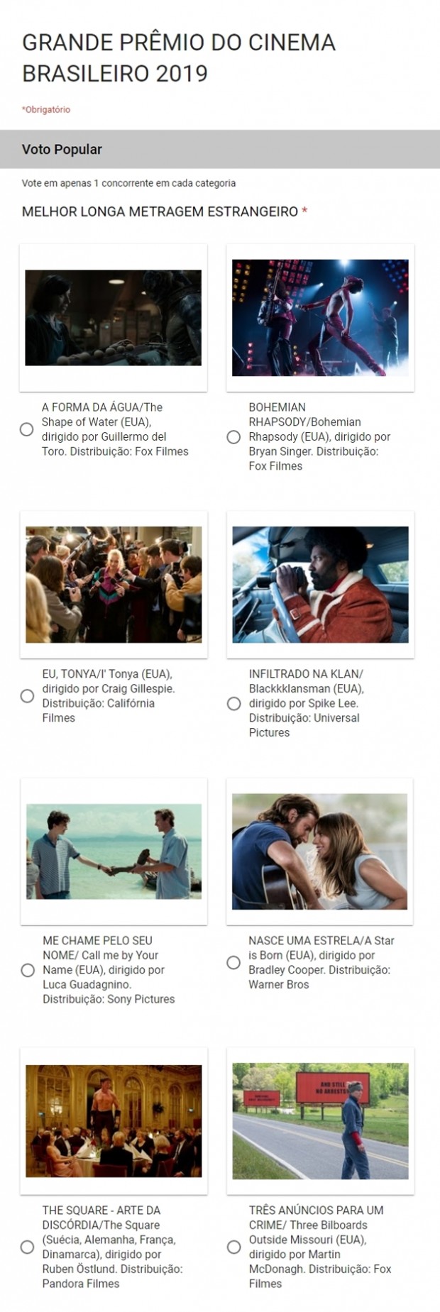 Nesta quarta-feira, dia 10, foi divulgada uma votação popular referente ao Grande Prêmio do Cinema Brasileiro 2019, premiação na qual "Nasce Uma Estrela" recebeu indicação em uma das categorias.