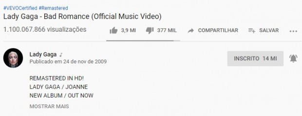 O icônico videoclipe de Lady Gaga, o qual podemos dizer ter marcado sua carreira, tornou-se o primeiro videoclipe feminino da década passada a ultrapassar 1 bilhão de visualizações no Youtube no final de 2018, mesmo após anos desde seu lançamento.