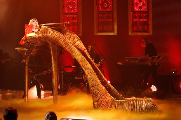 6) Se apresentou em cima de uma escultura em formato de um salto agulha feito pela sua irmã, Natali. E na frente, nada menos, de Oprah.