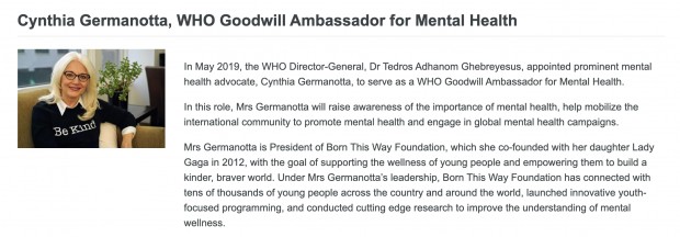 Perfil de Cynthia Germanotta no site da OMS.
