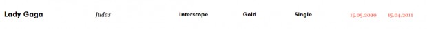 Foi anunciado nesta sexta-feira, dia 19, que um dos singles mais polêmicos de Lady Gaga, "Judas", recebeu uma nova certificação no Reino Unido.