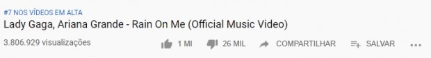 O videoclipe, cheio de figurinos, cenários e coreografia garantiu mais um feito na carreira de Lady Gaga, tornando-se o mais rápido a atingir 1 milhão de likes.