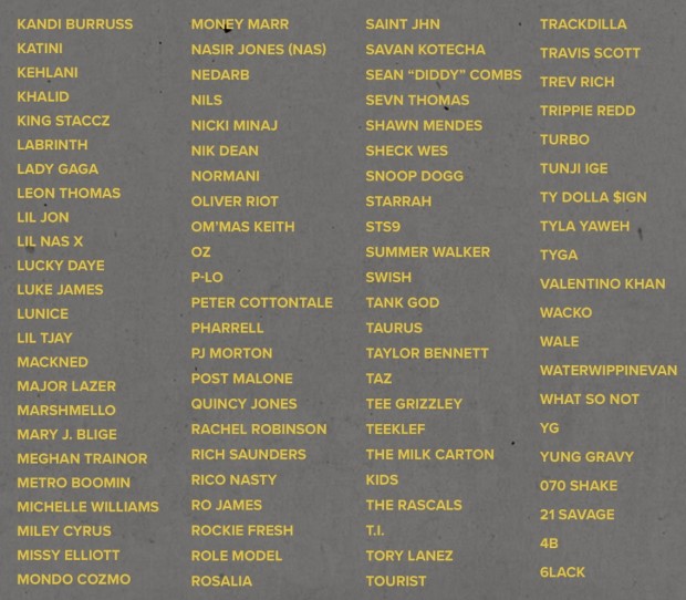 Uma gama diversa de artistas – muitos os quais são representados pelos membros que fundaram o BMAC – também apoiaram a carta aberta da coalizão e suas iniciativas, dentre eles Cardi B, Lady Gaga, Billie Eilish, Doja Cat, Lil Nas X, Khalid, Diplo, Rosalia, Travis Scott, Post Malone, Missy Elliott, Mary J. Blige e Sean 'Diddy' Combs.