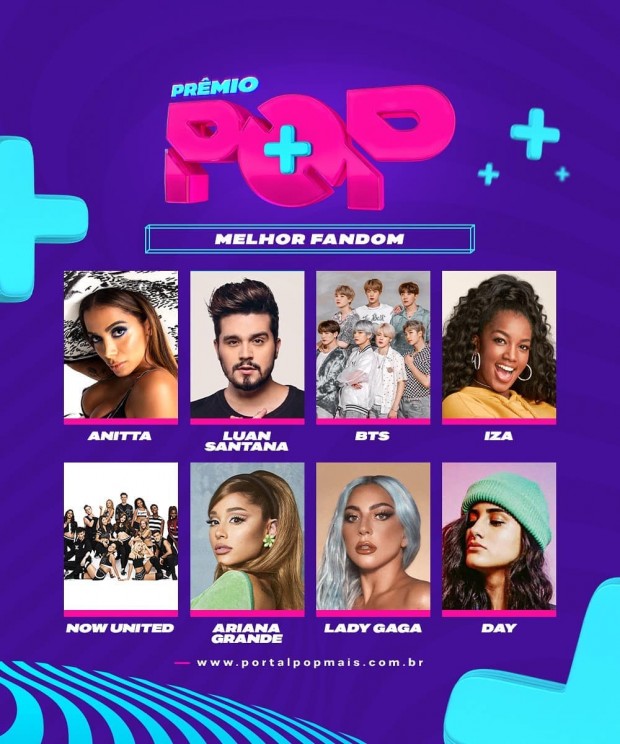 Nesta quarta-feira, dia 02, foi aberta a votação para o Prêmio POP Mais 2020, premiação que tem como objetivo escolher os melhores artistas do ano nas categorias Música e Internet, além delas existe também a categoria Artista LGBTQIA+ (que não é submetida à votação). Liderando as indicações deste ano estão: Anitta, Luísa Sonza e Manu Gavassi.
