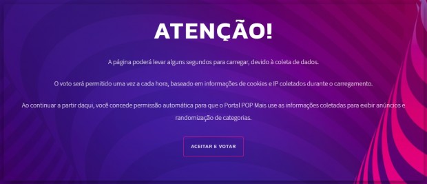 Para votar é simples, basta clicar aqui para ser direcionado(a) para o site da votação. Ao carregar, o site mostrará a seguinte mensagem: