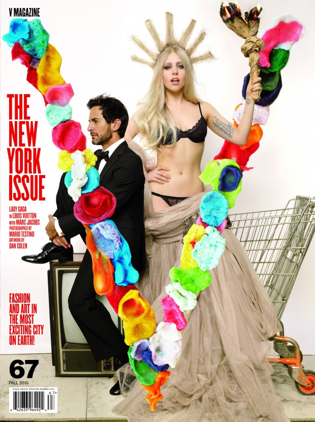 Gaga voltou apenas um ano depois da primeira capa para a edição de Nova Iorque de 2010. Fotografada por Mario Testino e vestida por Nicola Formichetti, Lady Gaga usa sutiã e calcinha com um tecido bege pendurado no seu braço enquanto ela segura uma tocha de papel acesa e seu cabelo forma uma coroa reminiscente da Estátua da Liberdade, ao passo que Marc Jacobs senta em uma TV de tubo bem ao seu lado. Um carrinho de supermercado está do outro lado de Jacobs e em outra foto Gaga está sentada no carrinho, possivelmente mostrando o que Nova Iorque significa para ela. O "V" nessa capa foi feito de chiclete mastigado. Essa capa inteira é glam-punk em seu melhor.