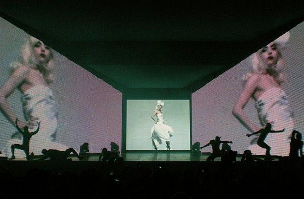Para o conceito original da fase "Arena", a ideia era ter no palco diversas telas gigantes em formatos de cubos, que seriam alternadas entre telas e espaços para que a banda, as backing vocals, Gaga e seus dançarinos pudessem ocupá-los.