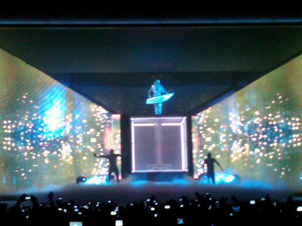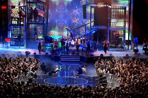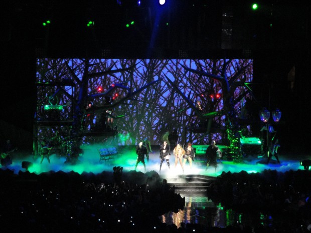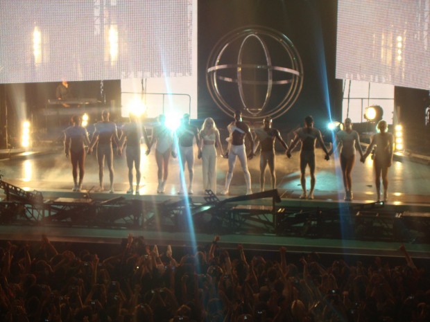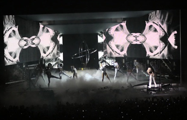 Atrás das telas laterais, que se movimentavam para cima e para baixo, a banda da cantora ficava posicionada durante todo o show.