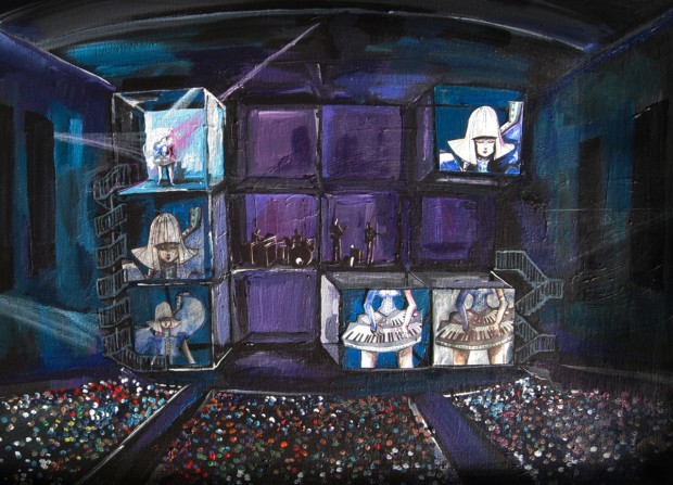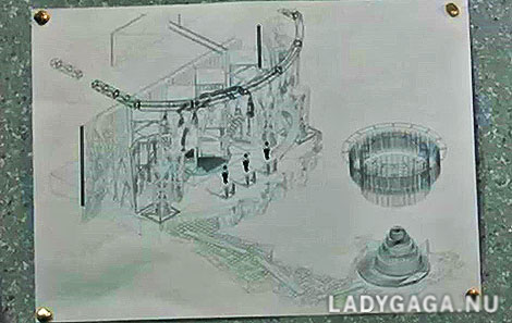 ”Tenho pensado em maneiras de brincar com a forma desse palco e mudar a maneira como vemos as coisas. [...] Então, o que fiz foi projetar um palco com a Haus of Gaga que é essencialmente um quadro com perspectiva forçada, e o quadro é colocado dentro do palco.”