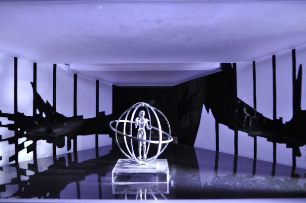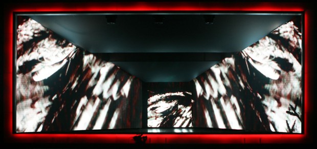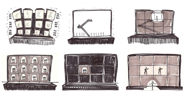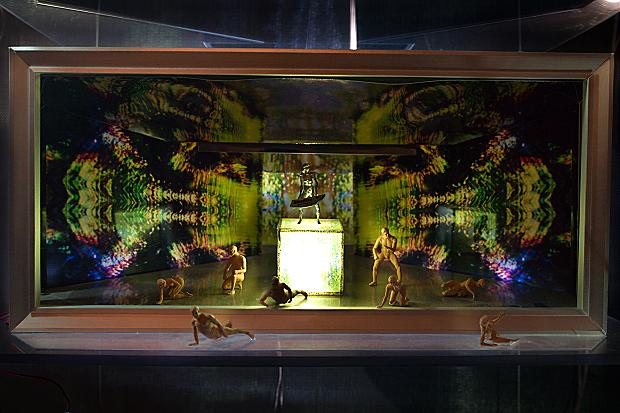 De cada lado de um “palco italiano” (formato de um palco de teatro retangular onde os espectadores ficam apenas na frente), duas telas gigantes proporcionavam uma sensação de profundidade para que todos pudessem ver o interior da “caixa”.