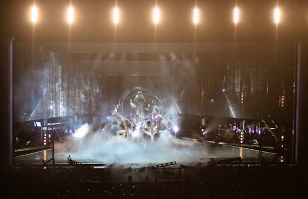 O conjunto de perspectiva em caixa, forrado com paredes estreitas de telas de vídeo “LED Nocturne V-Lite,” foi projetado por Es Devlin e construído pela TAIT Towers, com diversas peças móveis, marcando assim o início da parceria da cantora com a empresa.