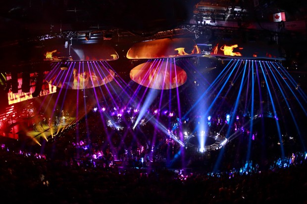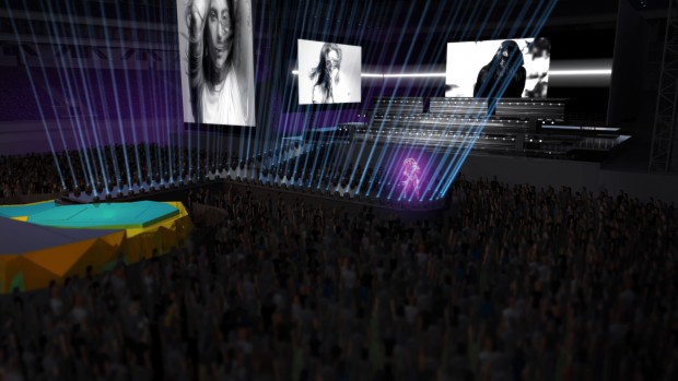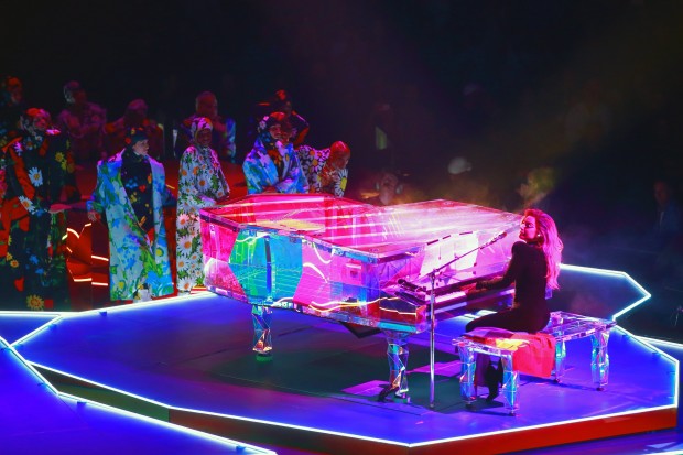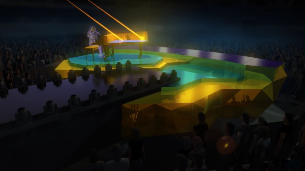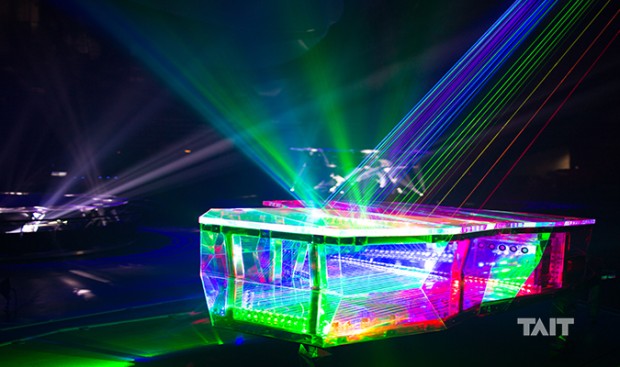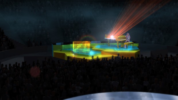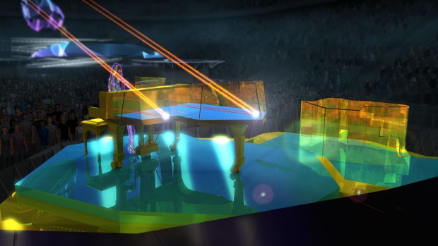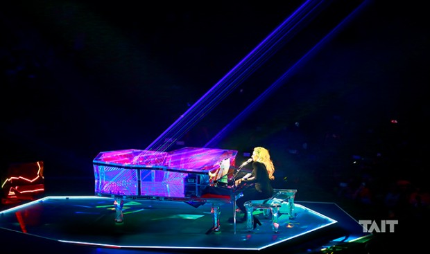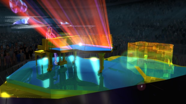 O piano também foi criado pela empresa, tendo a forma de um “coração abstrato” e feito com uma espécie de acrílico. Para combinar com a estética do “Palco B”, 44 lasers foram construídos pela Image Engineering e colocados dentro do instrumento, criando um arco-íris vibrante pela arena a cada tecla que era tocada.
