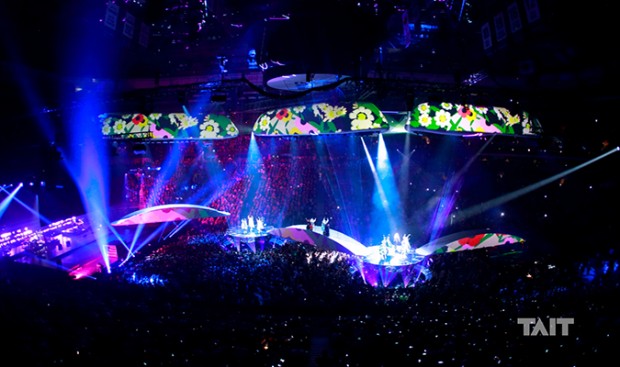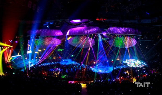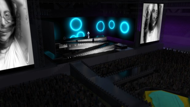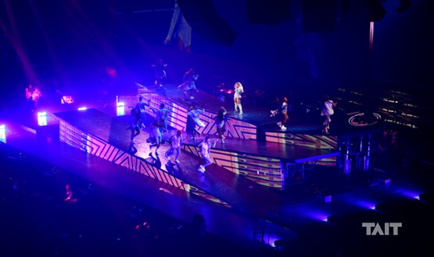 Neste novo desafio da TAIT a produção completa consistia em um palco principal totalmente dinâmico composto por três plataformas de pontes inclináveis que funcionavam também como telas de projeção, duas pequenas plataformas circulares e levadiças (os "Satellites Stages") que ficavam no meio da plateia e um terceiro palco chamado de "Palco B", menor e oposto ao principal. Havia também um telão gigante que descia em frente ao palco principal durante a introdução e interludes.