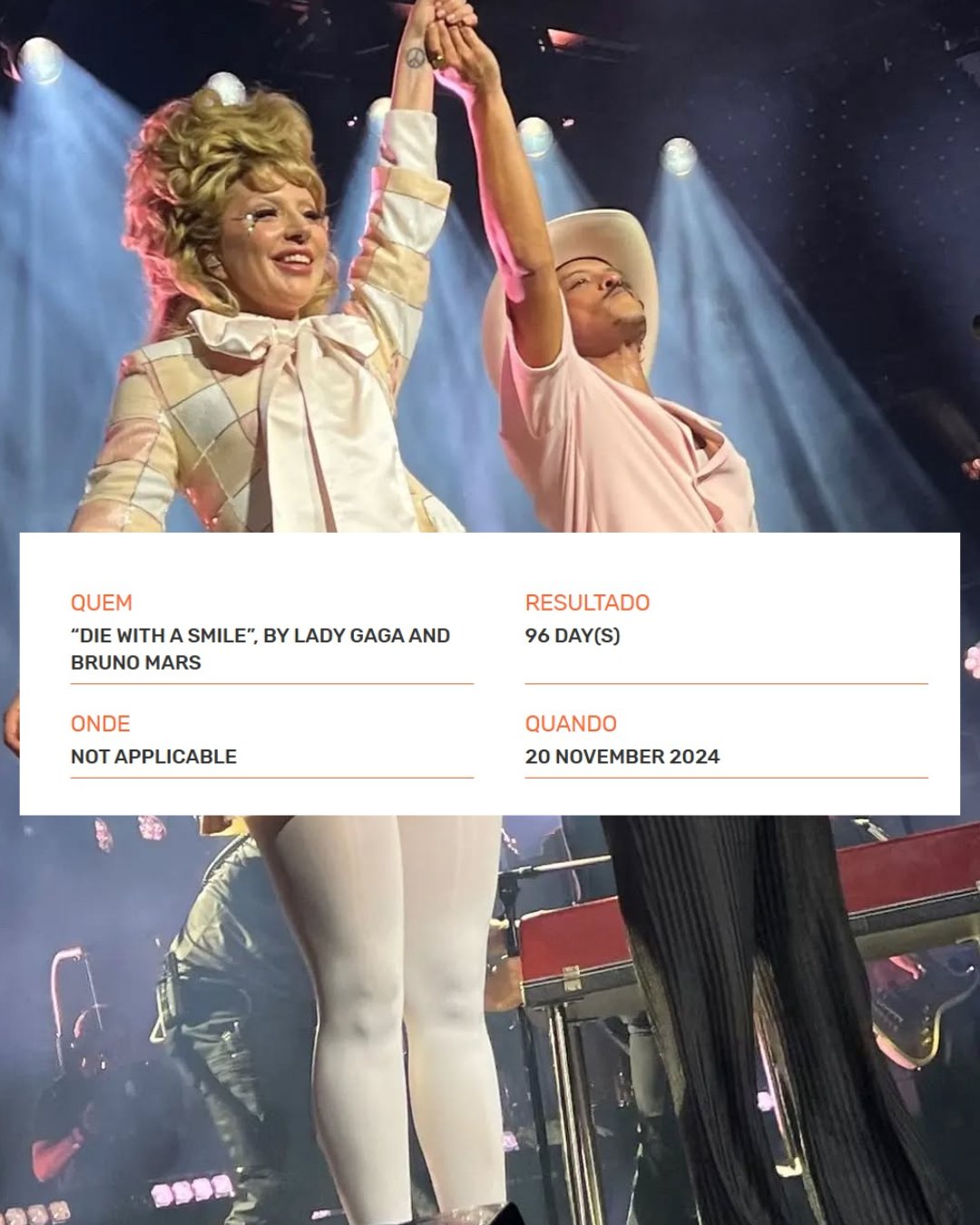 "Die With A Smile" (com Bruno Mars) - música mais rápida da história a atingir 1 bilhão de streams no Spotify (96 dias);