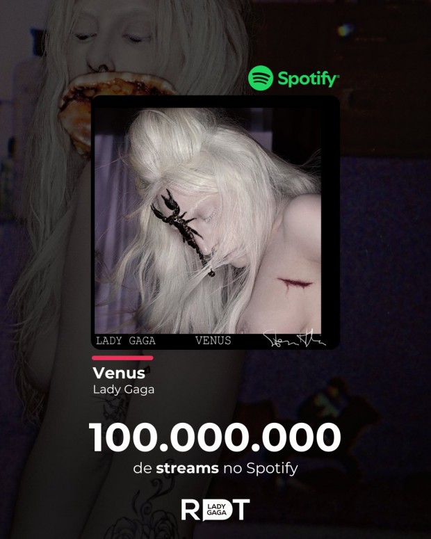 Nesta quarta-feira, em nova atualização, a faixa "Venus", do álbum "ARTPOP" atingiu a marca de 100 milhões de reproduções no Spotify. Com isso, a música se torna a 44ª música da carreira de Lady Gaga a bater o número na plataforma.